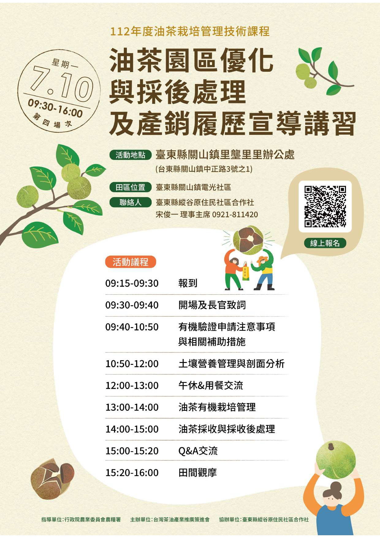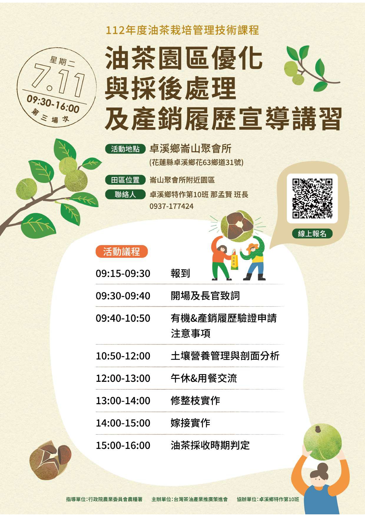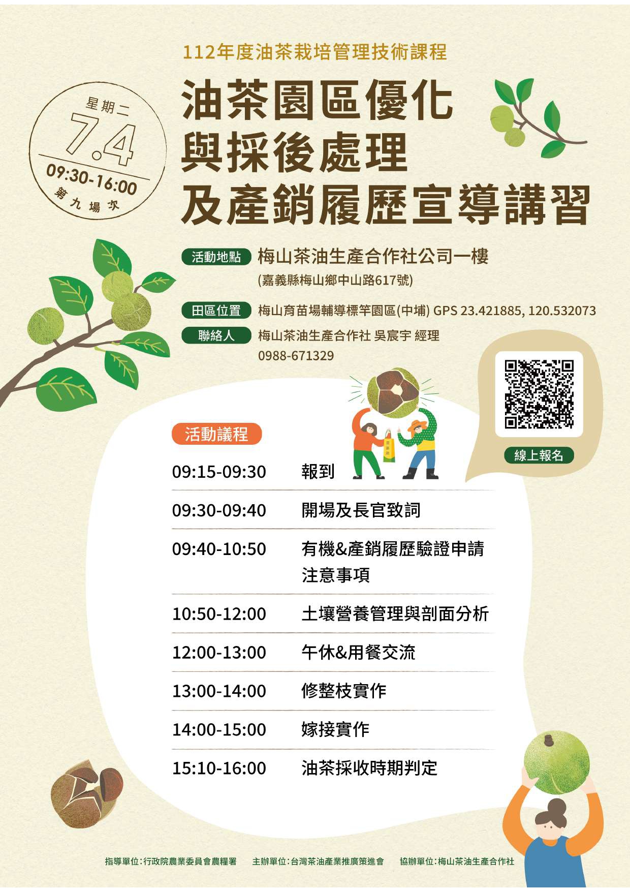 台灣農業科技資源運籌管理學會「油茶栽培管理技術系列課程」相關資訊