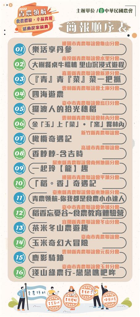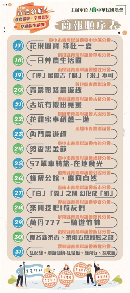 「2022青農領航-食農體驗,幸福實現活動提案競賽」-簡報順序