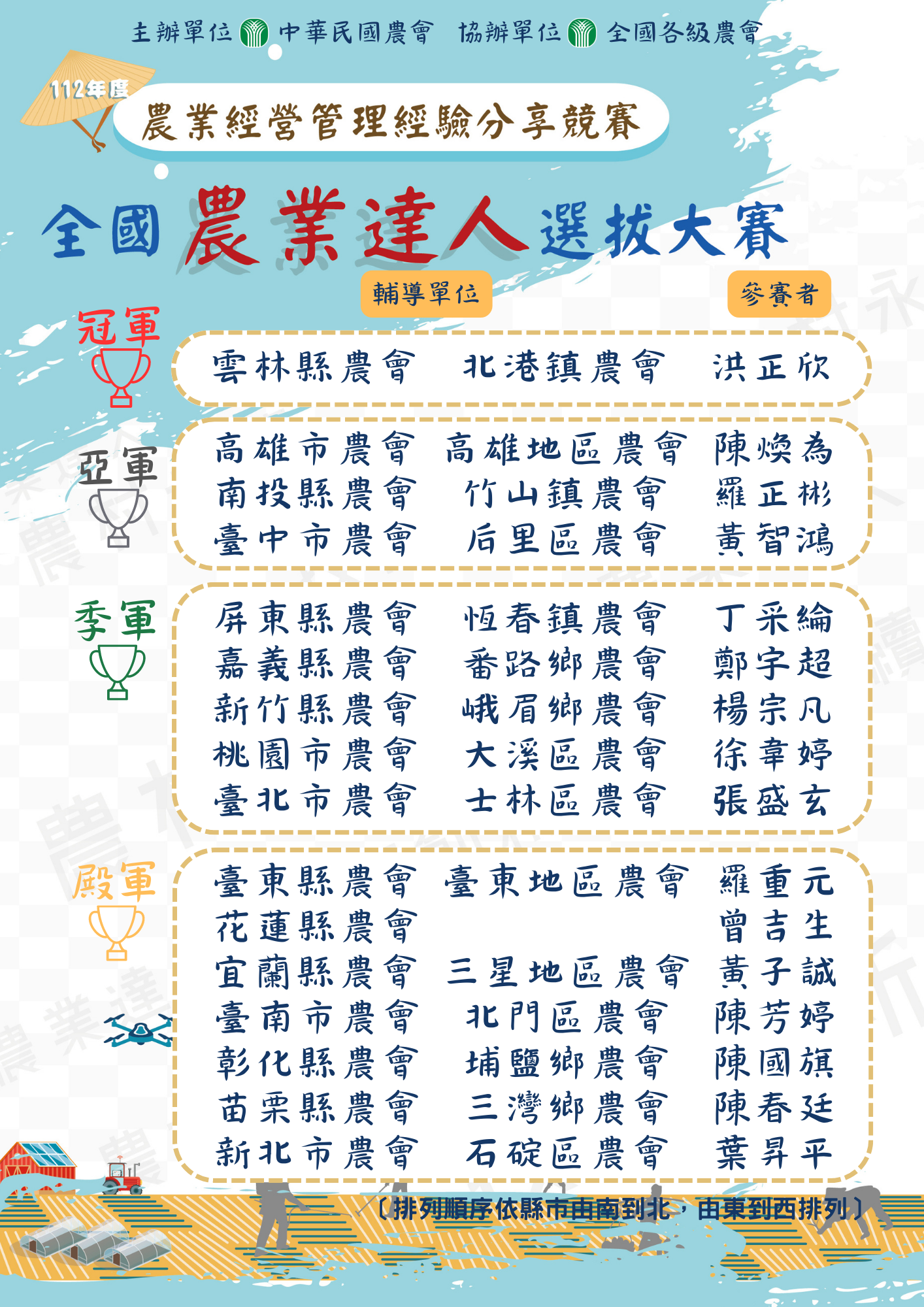 「112年度農業經營管理經驗分享競賽-全國農業達人選拔大賽」得獎名單