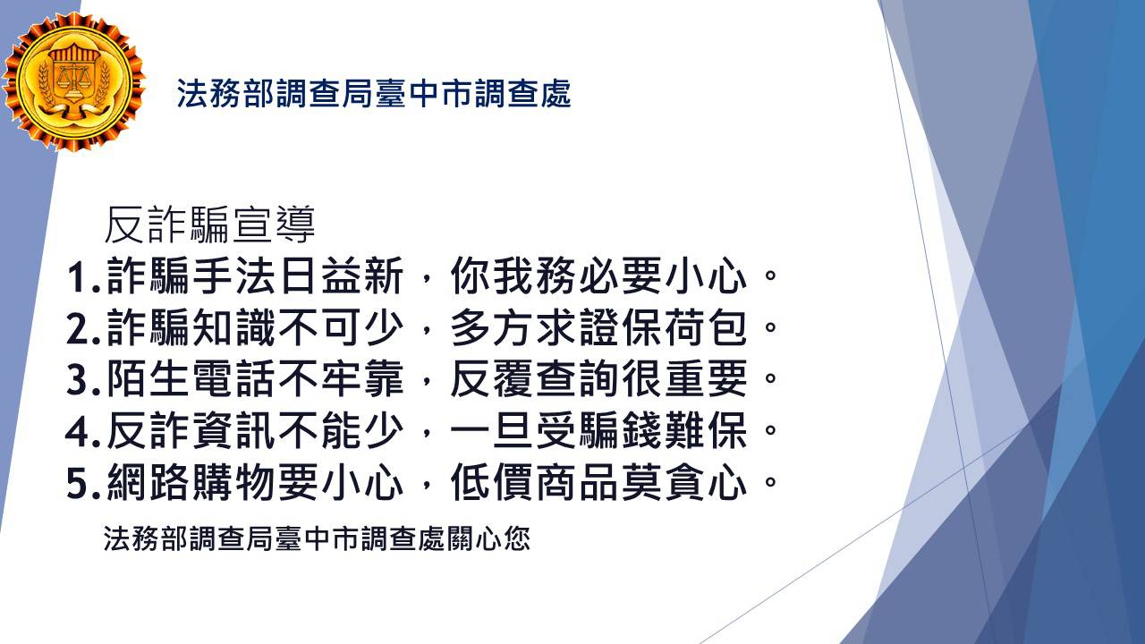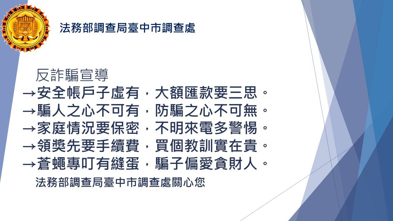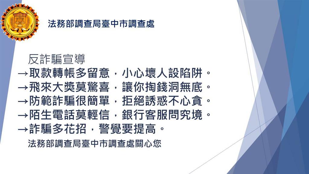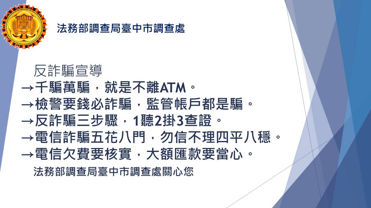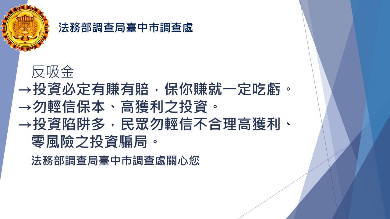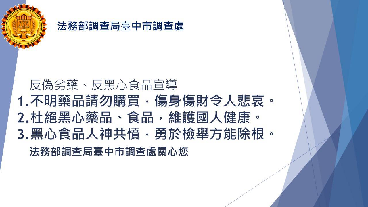 法務部調查局反偽劣藥、反黑心食品、反吸金及反詐騙宣導