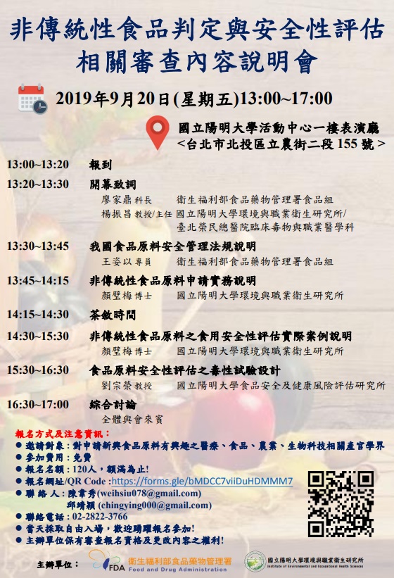 一、辦理時間:108年9月20日(五),13:00~17:00。 二、辦理地點:國立陽明大學活動中心一樓表演廳(臺北市北投區立農街二段155號)。 三、報名方式:線上報名https://forms.gle/bMDCC7viiDuHDMMM7。