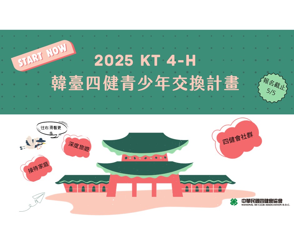 「2025 KT 4-H 韓臺四健青少年交換計畫」報名中~