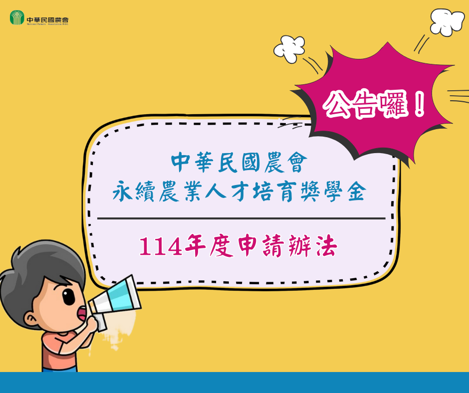 114年度「中華民國農會永續農業人才培育獎學金申請辦法」公告
