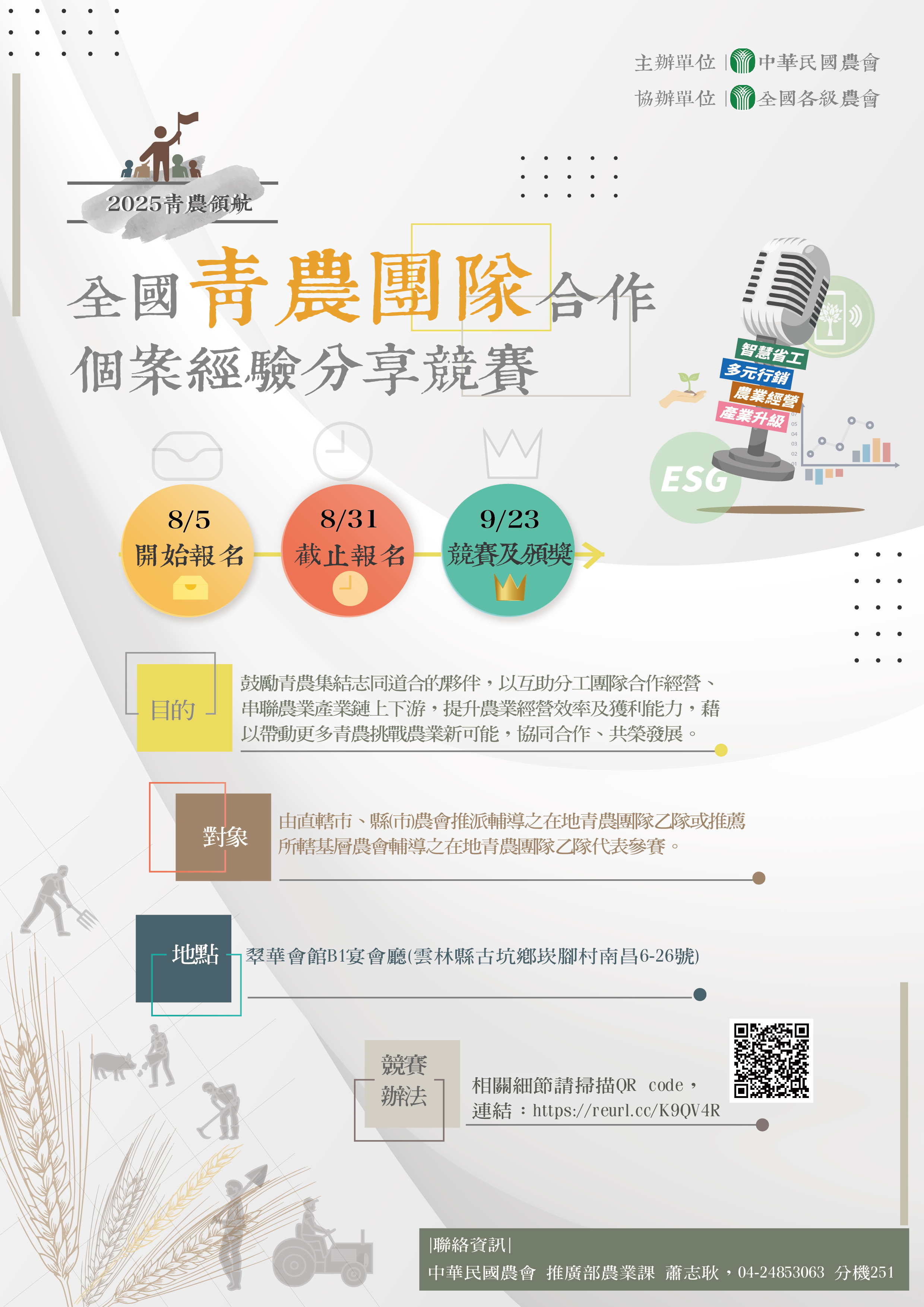 「2025青農領航-全國青農團隊合作個案經驗分享競賽」開始報名囉!