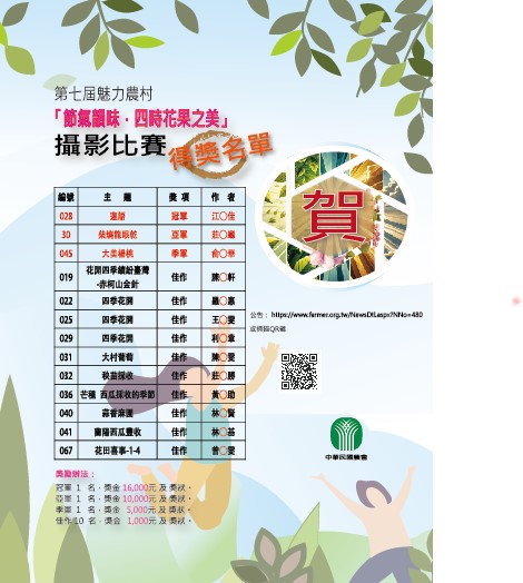 第七屆魅力農村「節氣韻味·四時花果之美」攝影比賽 得獎名單 公告