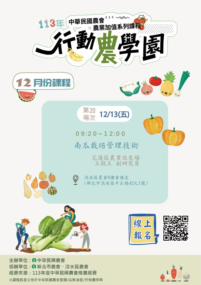 一、課程目的: 服務農民是農會存在的核心價值,為精進農民農業專業知識、技術以及因應全球淨零排碳、農業永續,開放各農會以在地主要作物提升產銷相關農業技術需求提案,由本會安排至現地辦理系列課程,藉由理論及實作課程,協助從農工作與時俱並促進現代化農業發展。 二、參加對象:產銷班班員、農民、青年農民、農會人員或對從事農業有興趣之民眾。 三、報名方式:採線上報名或報名表傳真報名 04-24854573。