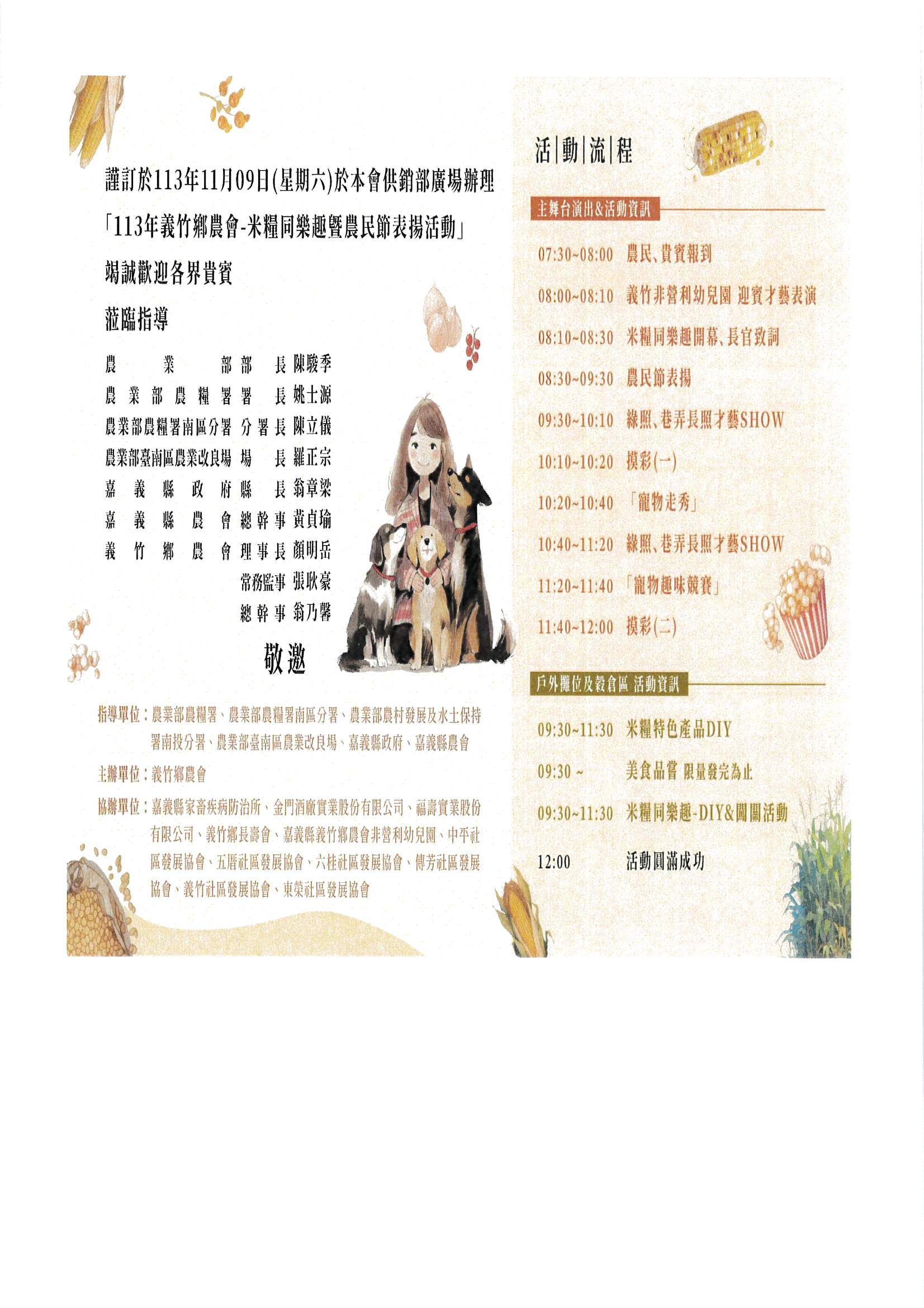 活動日期:11/9 活動內容:米糧特色產品DIY、闖關活動 主辦單位:義竹鄉農會