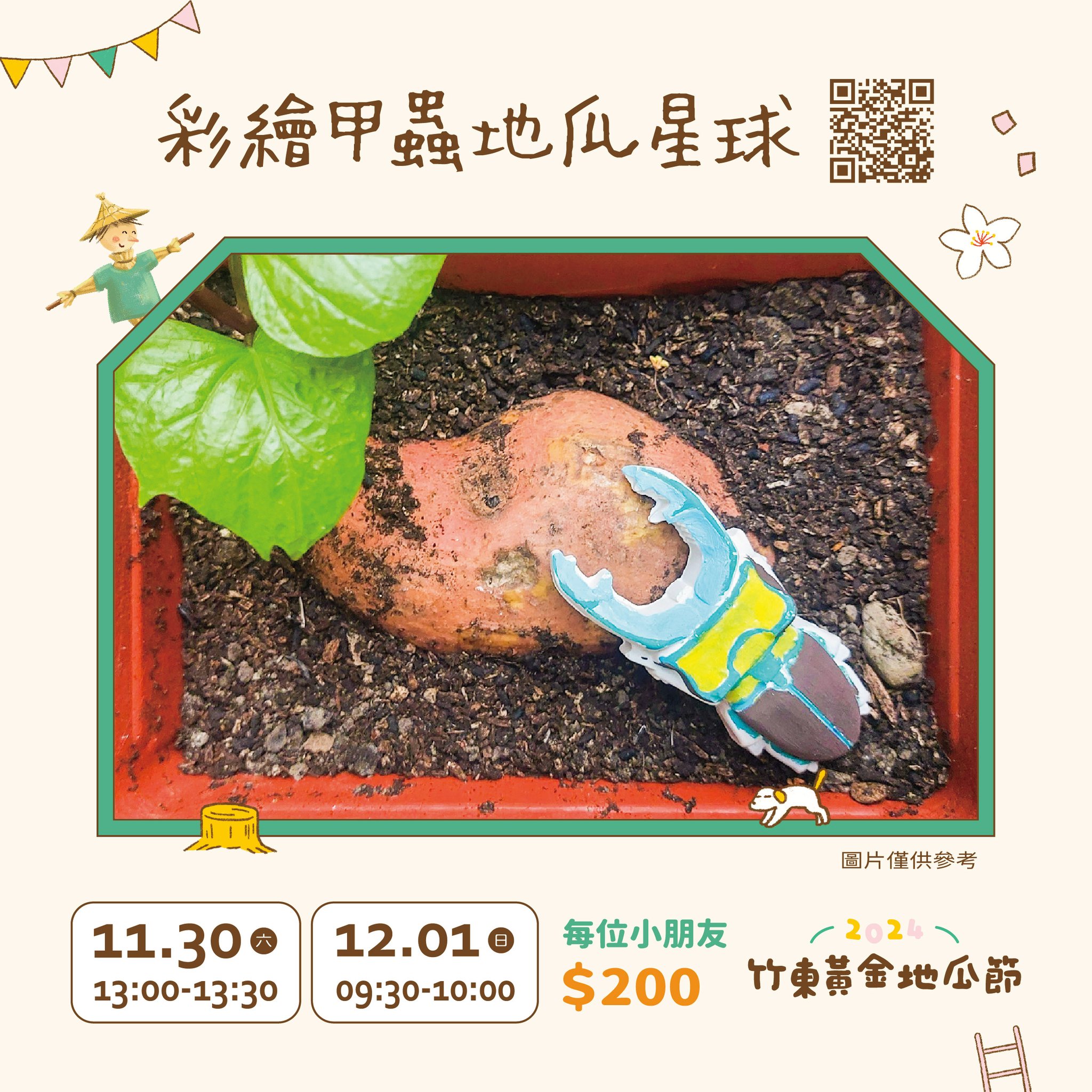 活動日期:11月30日、12月1日 活動內容: ※焢窯樂 https://bit.ly/3Ymqgrq ※地瓜挖挖趣 https://bit.ly/4huqaH5 ※尋找金雞蛋 https://bit.ly/3YIO4ay ※繽紛果乾棒 https://bit.ly/3C8ht5c ※彩繪甲蟲地瓜星球 https://bit.ly/4ediV3v 主辦單位:竹東地區農會