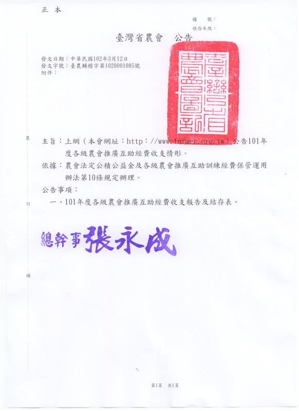 101年度公告